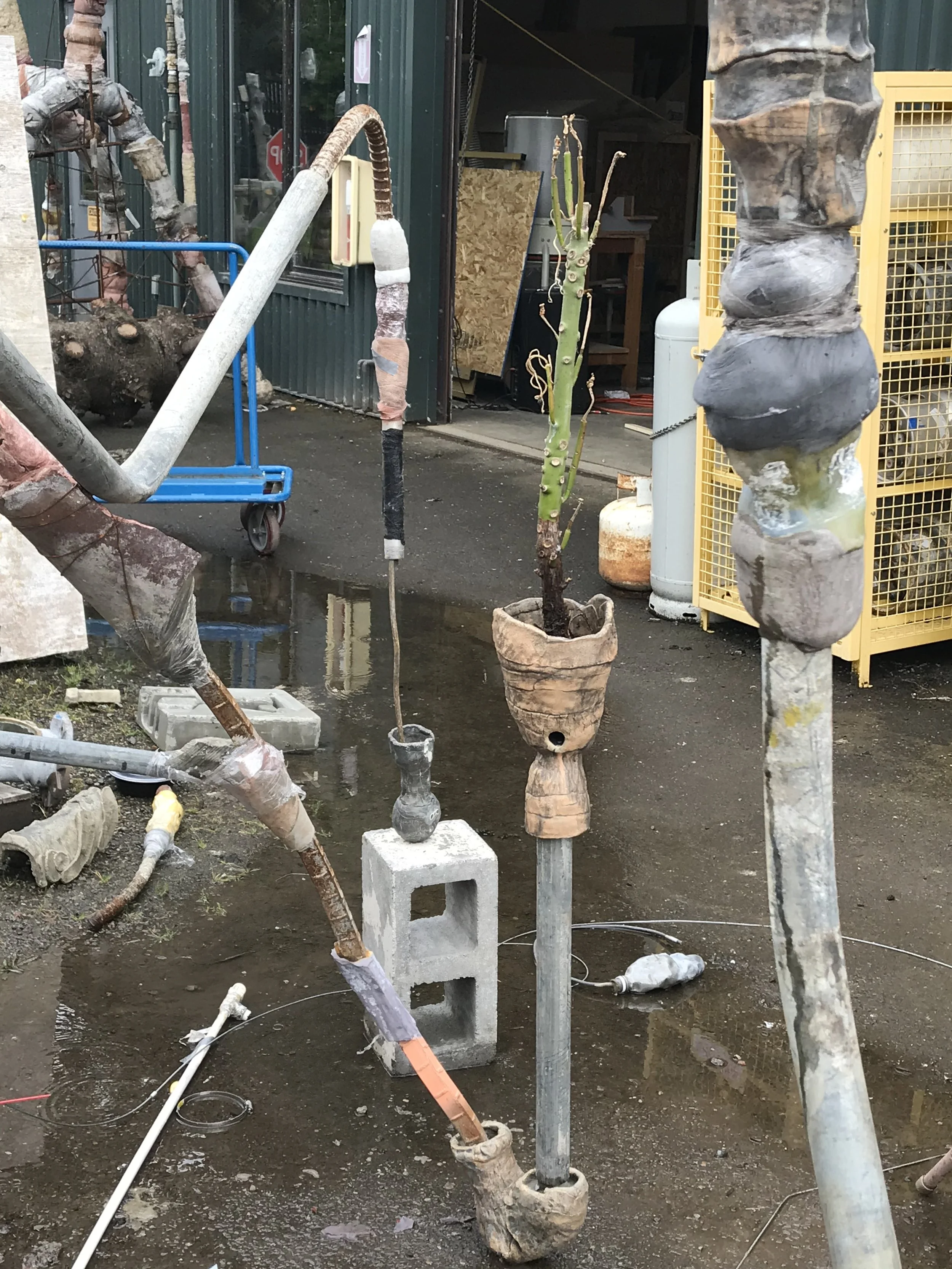 Through imagery of a grotesque body and through symbolism of industrial materials, this piece reveals a visceral connection between a damaged body and mutilated environment. This is a result of man’s irresponsible material usage through the ongoing construction and deconstruction of our built environment. By using construction materials such as concrete, ceramic, steel and plastic, I have developed a physical language that expresses the grotesque and sickly qualities of material itself. In return I hope to elicit human empathy and understanding of materiality through the sensate and corporeal structures.